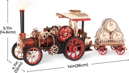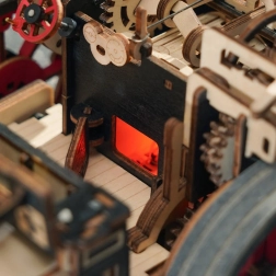 RoboTime 3D mechanická skládačka parního stroje nadchne všechny milovníky techniky, modelů a chytře řešených dřevěných stavebnic. Po sestavení získáte funkční model s manuální převodovkou se třemi rychlostmi, silikonovými koly a připojitelným odpruženým přívěsem otočným o 120°. LED osvětlení v topeništi a komíně vytváří realistický dojem spalování a kouře, takže model nejen vypadá, ale i působí jako skutečný parní stroj.