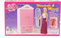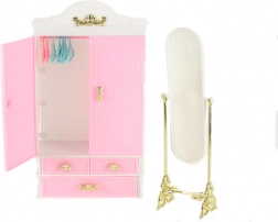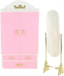 Zařaďte do své dětské hry šatní skříň a zrcadlo Glorie, které přichází s přehledným designem a funkcionalitou pro její panenky. Děti si mohou užívat uložení oblečků s patřičnou péčí díky praktickým ramínkům, zatímco zrcadlo dodá jejich hrací scéně nádech elegance.