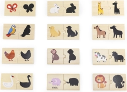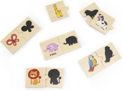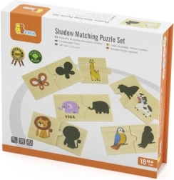 Dřevěná sada puzzle 'Stíny Zvířátek' je ideální vzdělávací hračkou, která podporuje učení barev, tvarů a objevování okolního světa. Děti mohou skládat puzzle, přiřazovat zvířata ke stínům na odpovídajících dlaždicích, což pomáhá rozvíjet rozpoznávání a rozlišování stínů.