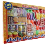 Objevte zábavnou a pestrou hru na kuchyň s touto velkou sadou jídla pro děti. Balení obsahuje 100 dílků včetně ovoce, zeleniny, pečiva, sladkostí i plechovek a kartonových nápojů. Ideální pro rozvoj fantazie, učení barev a tvarů a společné hraní. Vhodné od 3 let.