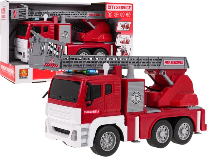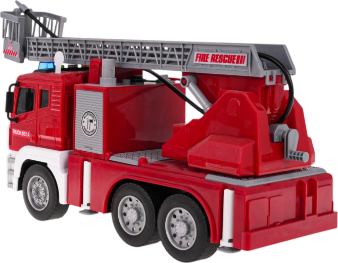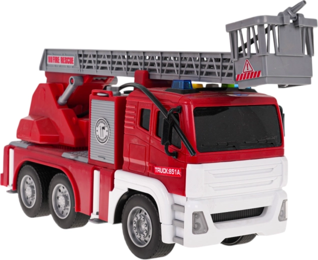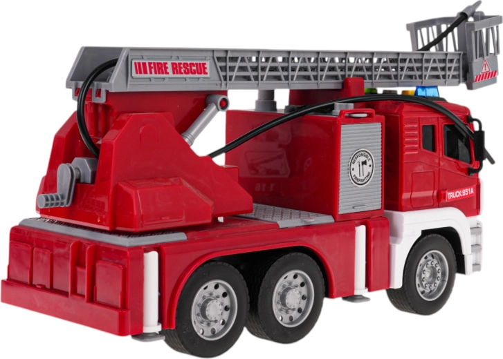 Toto interaktivní hasičské auto je perfektním herním společníkem pro děti, které milují akční hru. Vůz je vyroben z vysoce kvalitních materiálů a poutá pozornost zářivými barvami. Díky pohyblivé nastavitelné žebříku, gumovým pneumatikám a funkci stříkání vody je hra maximálně realistická a zábavná. Auto je poháněno třecím mechanismem na přední nápravě a je vybaveno světelnými efekty v kombinaci se zvukovými signály, které simulují opravdový zásah.