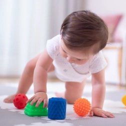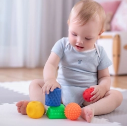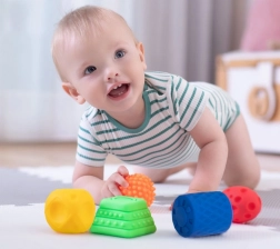 Textury a tvary hraček napomáhají rozvoji hmatových a motorických schopností u dětí.