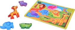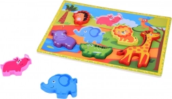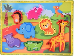 Tato skládačka motivuje děti ke hře a učí je názvy exotických zvířat.
