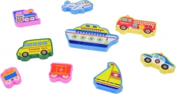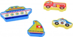 Obsahuje různé dopravní prostředky jako školní autobus, hasičský vůz, letadlo a další.