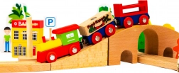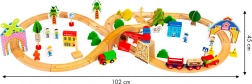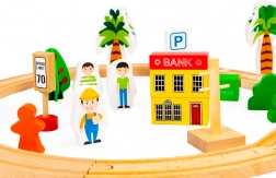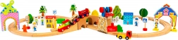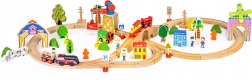 Tato dřevěná sada vláčků od značky Ecotoys je kompletním komplexem herních prvků, obsahujících 74 dílů jako vozidla, dopravní značky a budovy, které děti mohou libovolně skládat do atraktivního aranžmá. Je navržena s ohledem na dětskou bezpečnost, z kvalitních materiálů. Díky velkému množství příslušenství se děti mohou věnovat hře po dlouhé hodiny, a přitom rozvíjet zručnost, koordinaci a kreativitu.