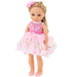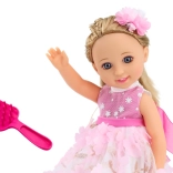 Tato roztomilá panenka v růžových šatech zaujme detailním zpracováním, jemným líčením a krásnými doplňky. Dlouhé blond vlasy lze snadno česat a upravovat díky přiloženému kartáči, k dotvoření účesu poslouží i stylová spinka. Pohyblivé končetiny a hlava umožňují přirozené pózování a realistickou hru.