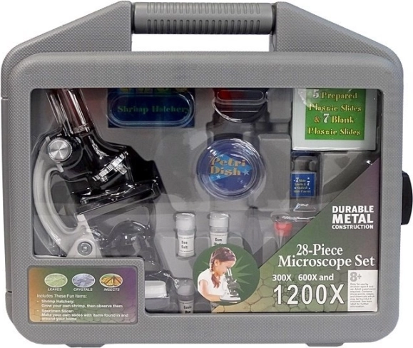 dětský mikroskop v kufříku 28 dílů, zvětšení 300x/600x/1200x