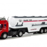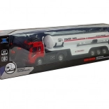 Představujeme zdalně ovládanou cisternu, která přináší dětem možnost prozkoumat svět stavebních vozidel v pohodlí jejich her. Vozidlo je vybaveno plastovými, běhounovými koly, což umožňuje využití na různých površích. Červená kabina s bílou nástavbou, doplněna kontrastními černými detaily a charakteristickými nálepkami, přináší realistický vzhled.
