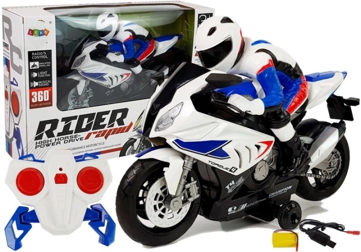 RC motocykl v bílé barvě potěší děti i dospělé. Díky spolehlivému ovládání 2.4 GHz se hračky neruší navzájem a reakce jsou plynulé. Motorka zvládne jízdu vpřed i otočku o 360°, přičemž světelné a zvukové efekty umocňují zážitek ze hry.