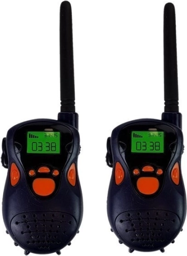Obsah balení: 2× vysílačka (tmavě modrá), 2× baterie 9V.