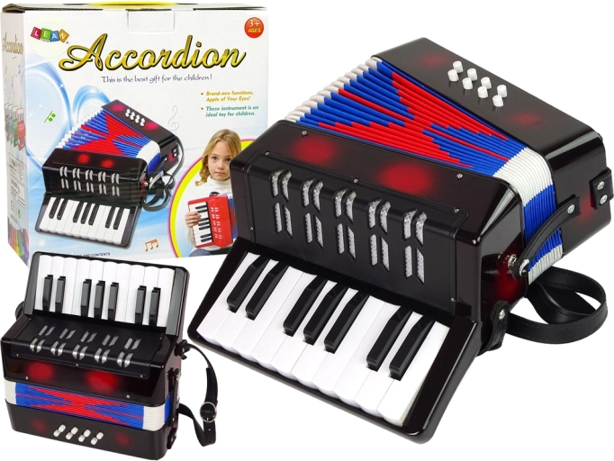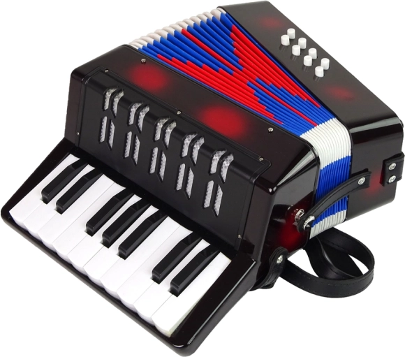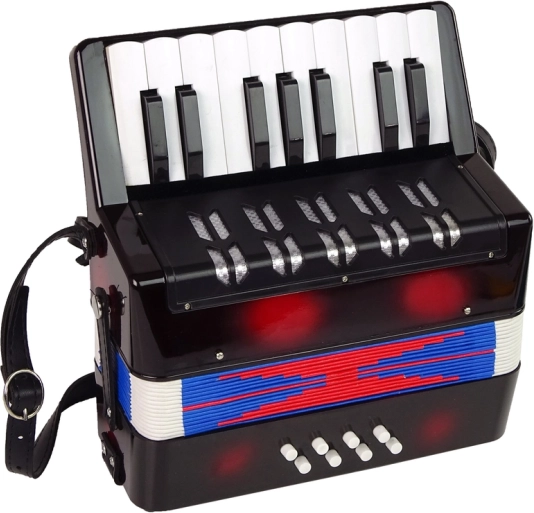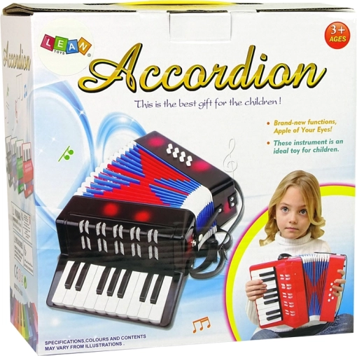 Objevte radost z hudby s dětským akordeonem, který vypadá i zní jako skutečný nástroj. Pomáhá dětem přirozeně rozvíjet koordinaci rukou, sluch a soustředění, a přitom poskytuje spoustu zábavy. Díky kompaktním rozměrům se snadno drží a ovládá.