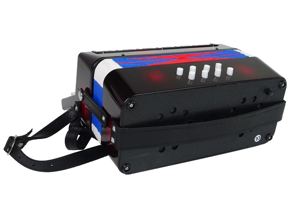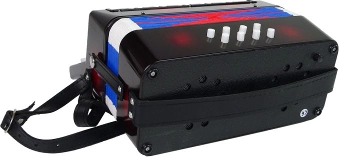Mechanika měchu a tlačítek věrně napodobuje skutečný akordeon, takže děti rychle pochopí princip hry a vytvoří krásné tóny.