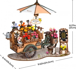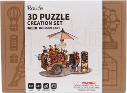 Objevte krásu pouličního prodeje květin s dřevěným 3D puzzlem Květinový vozík Rolife. Tento model přináší kouzlo starobylých tržišť do vašeho domova. Vozík je vybaven rustikálními koly, slunečníkem a konví na zalévání. Hotový model se stane krásnou dekorací, která oživí každý interiér.