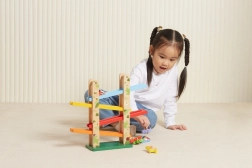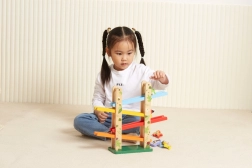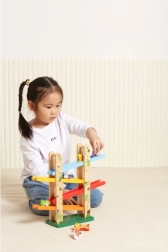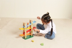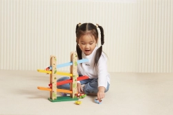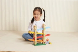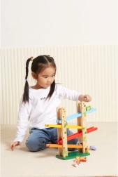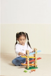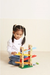 Dřevěná zjezdová dráha podporuje interaktivní hraní a zdokonaluje koordinaci pohybů.