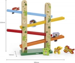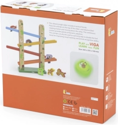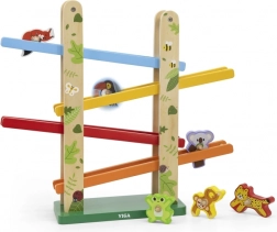 Dřevěná zjezdová dráha pro zvířátka Jungle Slider od značky VIGA je navržena tak, aby děti bavila a zároveň je vzdělávala. Díky kvalitnímu zpracování a barevným komponentám přináší tato hračka poutavé zážitky z hraní. Zvířátka mohou sjíždět po čtyřech úrovních rampy, což rozvíjí koordinaci a jemnou motoriku.