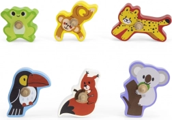 Součástí balení je šest dřevěných postaviček zvířat, které rozvíjí představivost a motorické dovednosti.