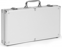 Set je dodáván v odolném kovovém kufříku, díky čemuž je ideální pro přenos. Kufřík je uzamykatelný (obsahuje dva klíče), což zabraňuje náhodnému otevření a rozptýlení herních prvků.