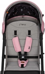 Růžová verze kočárku je ideální volbou pro rodiče, kteří chtějí našim nejmenším dopřát bezpečí a styl při procházkách.