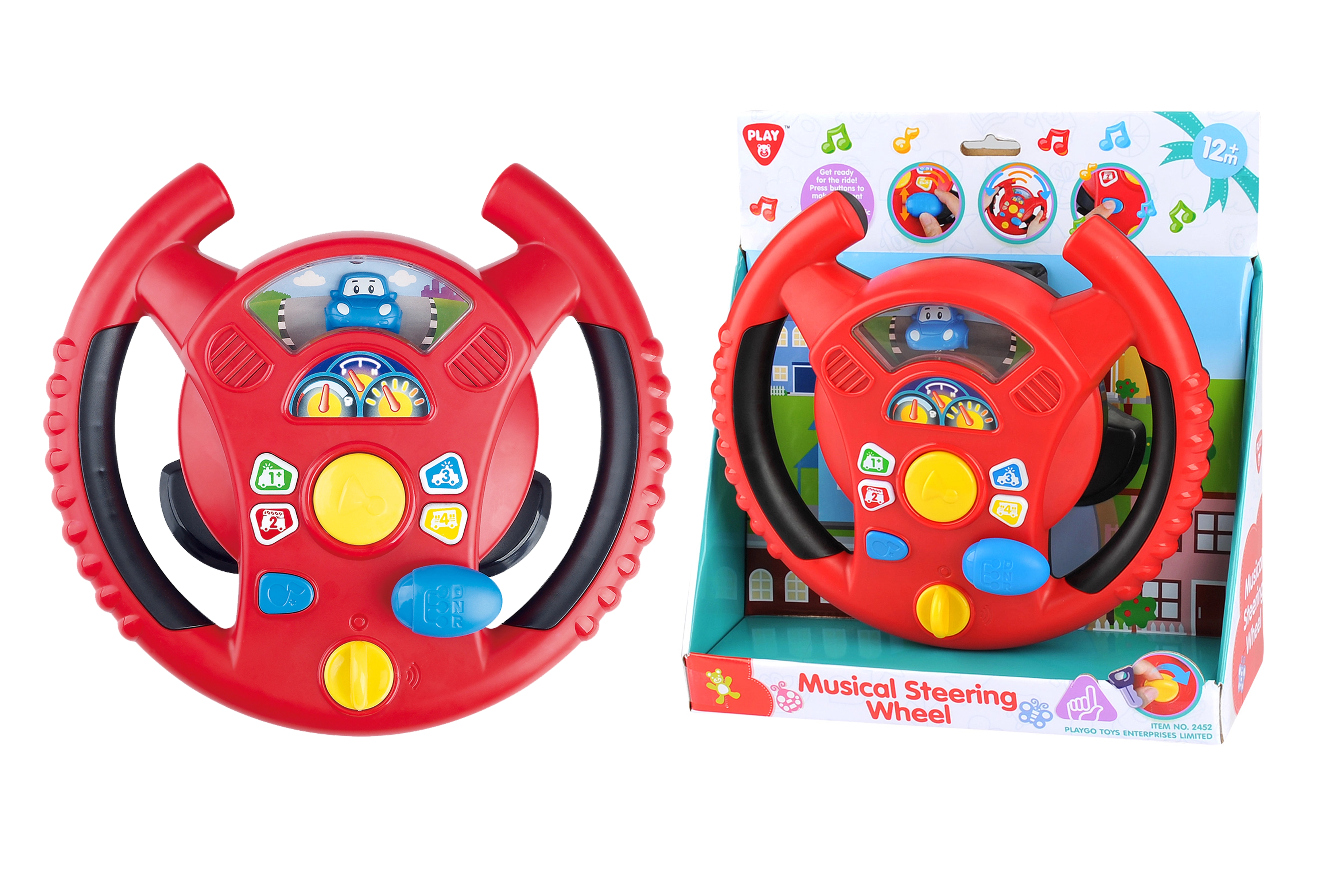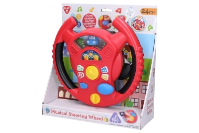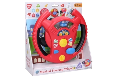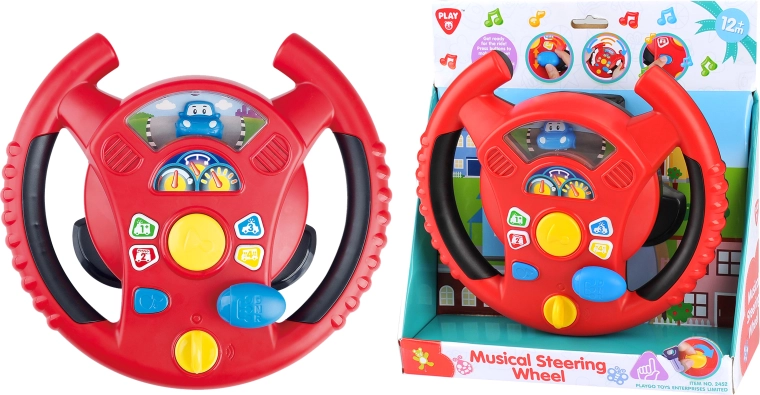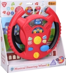Interaktivní volant Playgo přináší dětem zábavnou hru na řízení v mini městě. Otočný spínač na spodní straně volantu slouží k zapnutí, uprostřed najdete klakson, napravo řadicí páku pro zvuky jízdy a na věnci volantu malá tlačítka s tóny a melodiemi. Děti si užijí realistické efekty, které připomínají opravdové auto, a přitom rozvíjejí koordinaci a představivost.