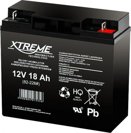 Gelový akumulátor XTREME 12 V 18 Ah je vyrobený moderní technologií AGM (Absorbent Glass Mat), která zajišťuje vysokou spolehlivost a bezpečnost při provozu. Díky kvalitním olověným deskám a elektrolytu poskytuje stabilní výkon pro většinu systémů zálohovaného napájení.