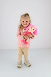 Růžové vlásky, šatičky a přátelský úsměv podněcují fantazii a podporují emocionální rozvoj dítěte.