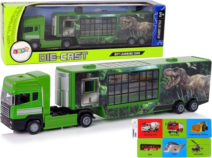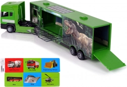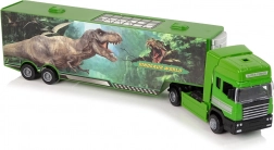Nákladní auto svým realistickým vzhledem povzbudí ke hře každého automobilového fanouška. Navíc je to kus vybavení se speciálním účelem ! Vozidlo pro přepravu a výzkum dinosaurů. Návěs nákladního auta je vybaven otisky dinosaurů, což je pro fanoušky těchto tvorů opravdová lahůdka. Návěs má prosklenou střechu a otevírací boky, takže do něj můžeš snadno naložit dinosaury a podívat se dovnitř, aniž bys musel otevírat vchod. Pod návěsem najdeš výsuvnou plošinu s rozkládacími schody.