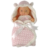 Loutka je oblečena do teplé růžové zavinovačky s bílou mašlí. Má pohyblivé ruce, což zvyšuje interaktivnost a realistický vzhled hry. Je vyrobena z atestovaných materiálů vysoké kvality, které zaručují bezpečnost a dlouhou životnost hračky.
