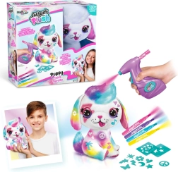 Vytvoř si vlastního plyšového mazlíčka s originálním designem! Díky bateriové airbrush pistoli snadno naneseš barvy, využiješ šablony i barevné fixy a během chvilky vznikne jedinečný, barevný plyšák. Součástí je airbrush, 4 barevné náplně, šablony a návod. Ideální kreativní zábava pro děti od 6 let.