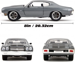 Chevrolet Chevelle SS z roku 1970 s licencí filmu Rychle a zběsile je opravdovou legendou pro fanoušky tuningu a sběratele. Tento model v měřítku 1:24 dokonale zrcadlí originál známý z obrazovky. Každý detail je věrně replikován, od interiéru po estetické disky.