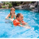 Díky těmto rukávkům si děti mohou užít radostné chvíle ve vodě, zatímco se učí plavat pod dohledem, jak ukazuje obrázek pohody u bazénu.