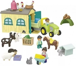 Objevte kouzlo venkova s hracím setem PLAYMOBIL Junior – farma s traktorem, přívěsem a roztomilými zvířátky. Ideální pro děti 1–4 roky, rozvíjí představivost, jemnou motoriku i schopnost třídění. Set nabízí traktor s přívěsem, stodolou se třídicí střechou, figurky rodiny a bohaté příslušenství pro nekonečné příběhy ze statku.