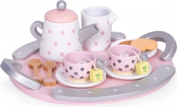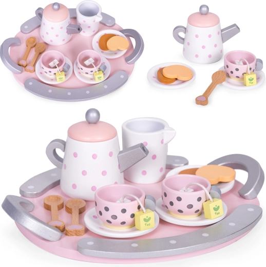 Tato stylová sada na čaj od ECOTOYS potěší každé dítě, které rádo hostí rodinu i kamarády. Dřevěné nádobíčko s puntíky působí realisticky, díky čemuž děti snadno napodobí dospělé, procvičí společenské dovednosti a naučí se zásadám stolování. Odolné dřevěné zpracování zaručuje dlouhou životnost a bezpečnou hru.