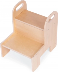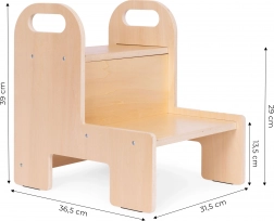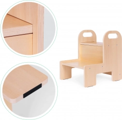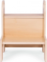 Silná 12mm překližka, zaoblené hrany a dvě prostorné schůdky poskytují dětem jistotu při každodenním používání v kuchyni i koupelně.
