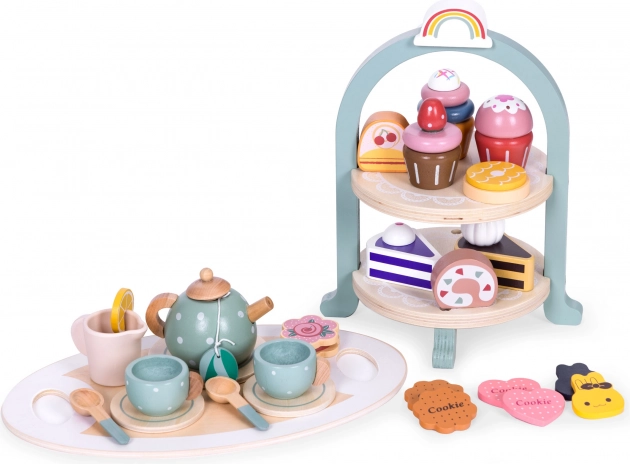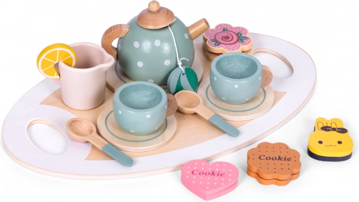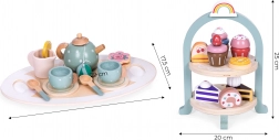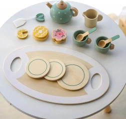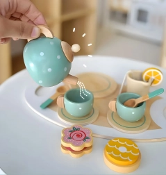 Tato skvělá sada vtáhne děti do světa dospělých, kde si užijí fantastickou zábavu se svou rodinou. Obsahuje vše potřebné pro uspořádání speciálního odpoledne: džbán, šálky, talířky a praktický tácek. Ani čajový dýchánek se neobejde bez sladkostí, proto sada obsahuje barevné sušenky, dortíky a muffiny, které potěší svým realistickým vzhledem. Díky těmto hračkám může dítě hrát roli dospělého a pozvat vás na lahodný čaj a sladké svačinky. Kromě skvělé zábavy, vaše dítě rozvine svou představivost a manuální dovednosti, a také se naučí, jak připravit lahodný čaj nebo kávu a osvojí si pravidla stolování.