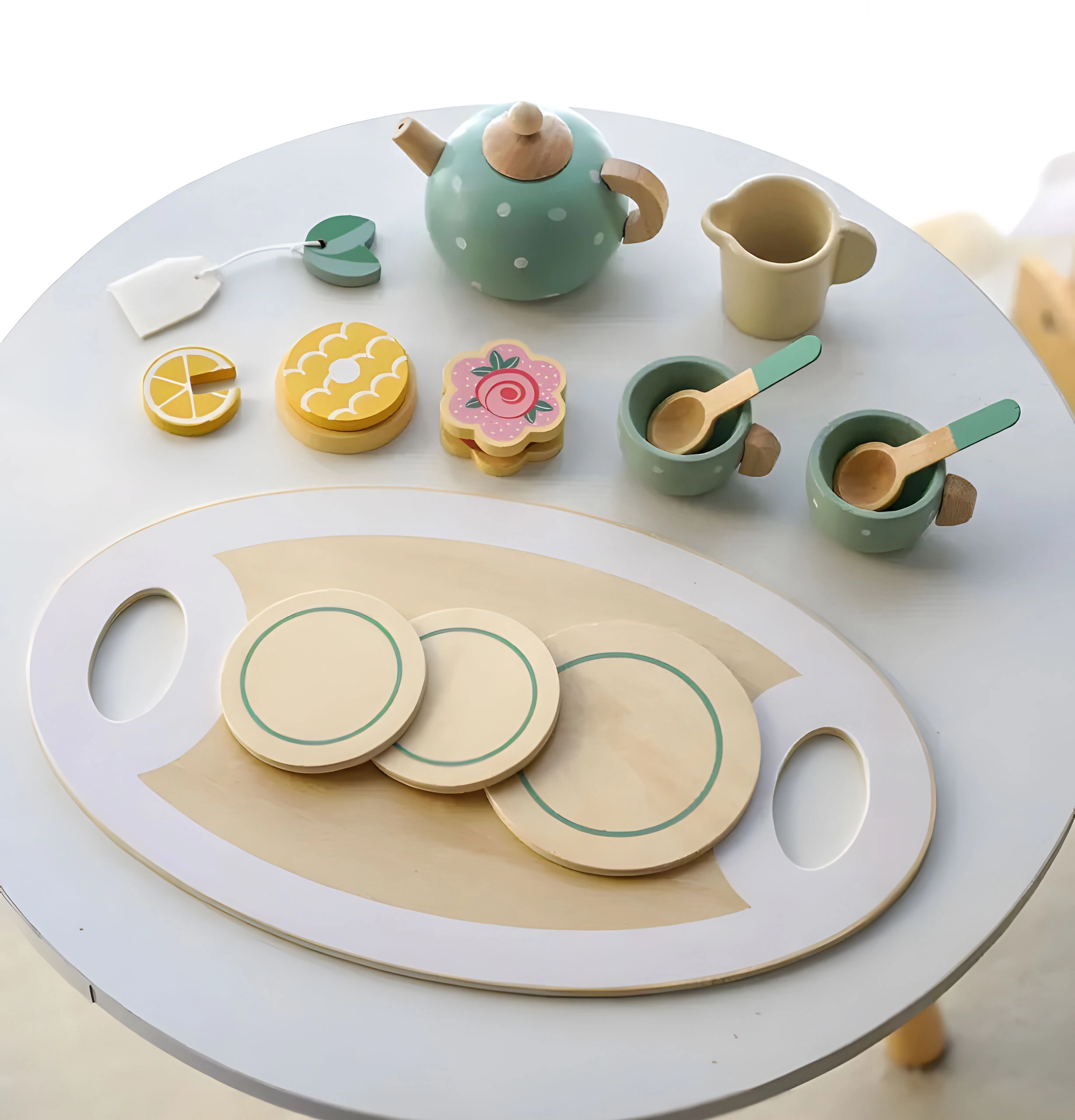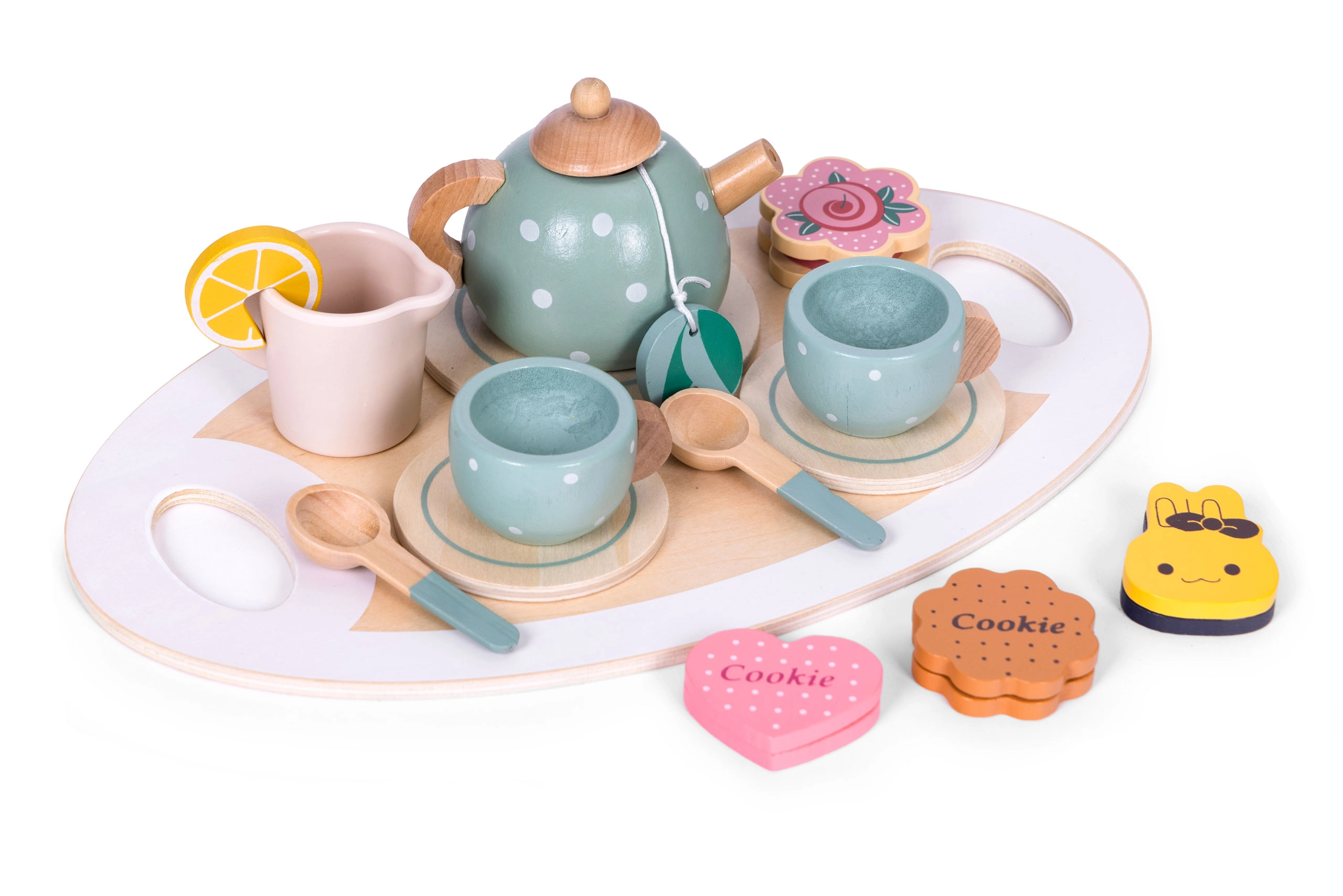 Barevná sada obsahuje všechno, co děti potřebují pro jejich imaginární čajový dýchánek s kamarády.