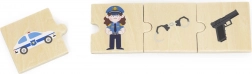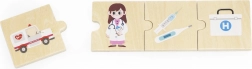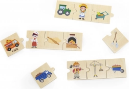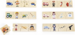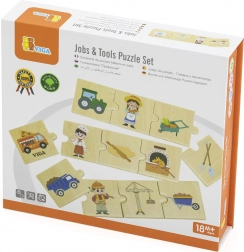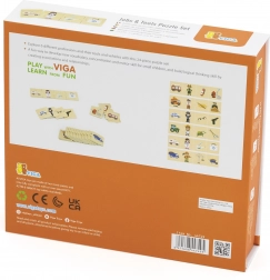 Dětská vzdělávací sada VIGA přináší 24 dřevěných dílků s krásnými ilustracemi, díky nimž se děti hravou formou seznámí s 6 povoláními – například hasič, lékař, policista, zemědělec, stavbař či pekař – a přiřadí k nim správné nástroje a vozidla. Barevné obrázky podporují učení nových slov a rozšiřují slovní zásobu.