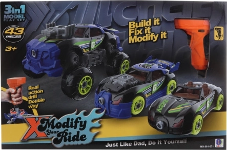 Díky 43 dílkům si mohou malí konstruktéři zkusit, jak fungují jednotlivé součástky, a opakovaně auto rozebírat a skládat. Praktický elektrický šroubovák na 2× AA zajistí snadné dotahování bez námahy. Vhodné pro děti od 3 let.