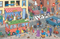 Městské scénky s nečekanými zvraty rozvíjejí představivost a pobaví i dospělé. Ideální pro společné objevování detailů.