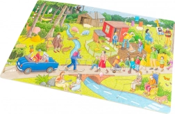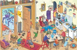Tato velkoformátová kniha zve děti do pestrobarevných scén plných veselých nesmyslů – od domácího chaosu až po rušné ulice či hravá venkovní dobrodružství. Každá stránka je bohatě ilustrovaná a nabitá drobnými příběhy, které lákají k objevování, vyprávění a společnému smíchu.
