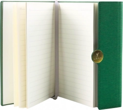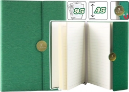 Tvrdé, odolné desky v zeleném provedení chrání obsah a dodávají zápisníku profesionální styl pro každodenní použití.