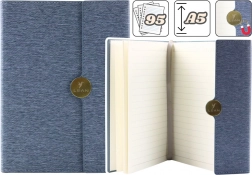 Elegantní kancelářský poznámkový blok se zapínáním na magnet a tvrdými deskami chrání vaše poznámky před poškozením. Nabízí 95 krémových listů v liniích s místem pro datum a dny v týdnu, praktickou gumičku na pero a textilní záložku. Kompaktní formát A5 je ideální do tašky i do práce.