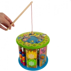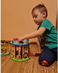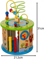 Tato kreativní kostka je navržena pro malé objevitele a nabízí 11 různých aktivit na všech stranách včetně horní plochy. Děti si procvičí rozpoznávání barev a tvarů, naučí se počítat na počítadle, pochopí princip hodin a zlepší oko-ruka koordinaci díky bludišti s korálky a dalším interaktivním prvkům.