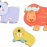 Praktické balení ve tvaru zvířátka a transparentní úložný box udrží vše pohromadě doma i na cestách. Polární motivy zaujmou a podpoří rozpoznávání zvířátek i barev.