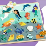 Objevte hravou dřevěnou vkládačku od značky DJECO s kouzelným motivem mořského světa a mořských panen. Podporuje rozvoj jemné motoriky, koordinaci oko–ruka i logické myšlení. Každý dílek má barevný obrys pro snazší umístění a díky rámečkům dílky lépe drží na svém místě. Vkládací prvky lze navíc použít jako samostatné figurky na hraní.