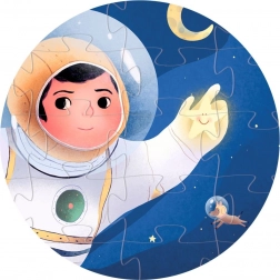 Toto nádherně ilustrované puzzle přináší unikátní téma vesmíru, kde se astronaut nachází na Měsíci. Puzzle o velikosti přibližně 42 x 30 cm je skvělým způsobem, jak rozvíjet jemnou motoriku a prostorovou představivost.
