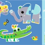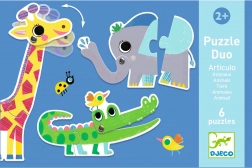 DJECO Puzzle Duo Zvířátka je ideální hračka pro nejmenší děti. Sada obsahuje 6 dvoudílných skládaček, které pomáhají rozvíjet jemnou motoriku a logické myšlení. Velké dílky skládaček jsou snadno uchopitelné, což je činí vhodnými pro malé ručičky.