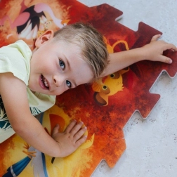 Pěnové puzzle Lví král TREFL je ideální volbou pro bezpečné a kreativní hraní. Speciální materiál podobný silné karimatce zajišťuje měkkost, odolnost a jednoduchou údržbu. Děti si užijí nejen skládání oblíbených motivů z filmu Lví král, ale také stavění kostek či tunelů.
