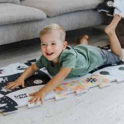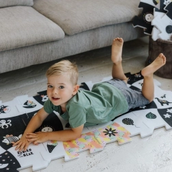 Dětská pěnová podložka s motivy Treflíků v elegantním černobílém designu nabízí nadstandardní tloušťku 1,5 cm, měkký a bezpečný povrch pro hraní a snadnou údržbu. Z osmi dílů poskládáte plochu cca 117 × 60 cm, případně kostku či tunel – ideální pro hraní, tvoření i jako stylová dekorace do dětského pokoje.
