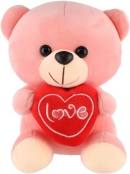 Tento růžový medvídek drží červené srdíčko s nápisem „love“ a okamžitě si získá srdce malých i velkých. Hebký plyš a pečlivě vyšívané detaily z něj dělají bezpečného a příjemného společníka pro každodenní tulení.
