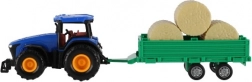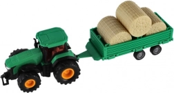 Traktor s vlečkou je ideální hračkou pro každého malého zemědělce. Tento model nabízí setrvačník a přívěs s balíky sena, které lze odpojit.